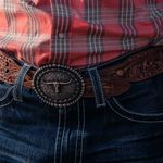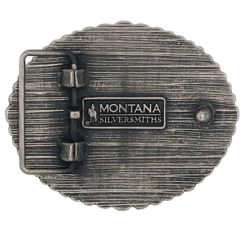 Montana Silversmiths Rustic Barbed Wire Longhorn Buckle: