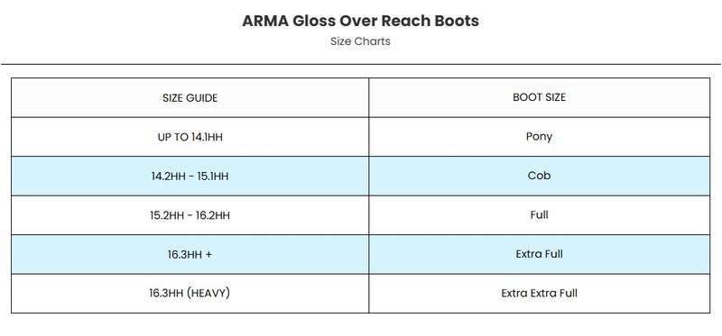 Ideal for schooling, exercise and turnout. Durable over reach boots in bright glossy colours. The flexible material deflects blows to protect the heel bulb. Easy grip double sided touch close straps secure the boot with reassurance. Attractive wide rubber straps are finished with the ARMA logo.