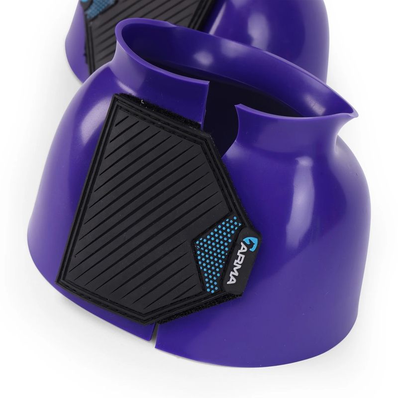 Ideal for schooling, exercise and turnout. Durable over reach boots in bright glossy colours. The flexible material deflects blows to protect the heel bulb. Easy grip double sided touch close straps secure the boot with reassurance. Attractive wide rubber straps are finished with the ARMA logo.