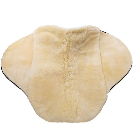 Genuine sheepskin underside with two different depths of wool: 30 mm where the rider sits and 15 mm at the sides for close contact with the horse. Pads can be inserted into the integrated pockets. Pads not included. Velcro strips at the front and back are used to fix the pad. The nylon protection at the bottom of the flaps helps to prevent girth chafing. Girth guide has velcro closure