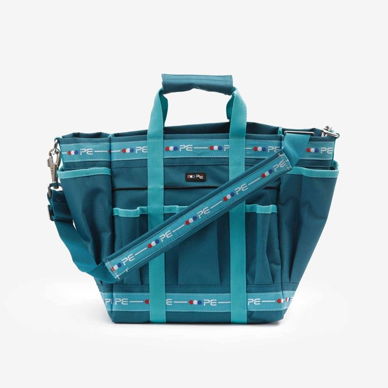 Featuring multiple storage pockets and carrying straps as well as 'PE' branding, this black and red grooming kit bag is strong and durable; perfect for the safe storage of your favourite horse grooming products (not included).
