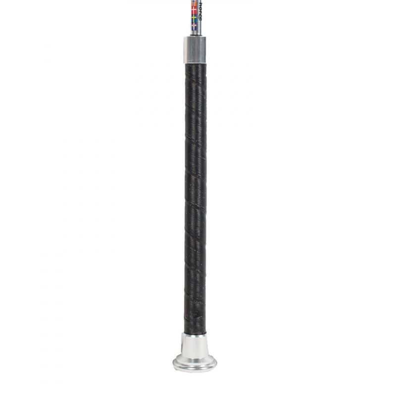 The lightweight feel of this carbon dressage whip will feel weightless in your hand. The aluminum trim at the cap and collar contrasts the traditional long shaft. The handle is lightly padded for comfort. Material: Carbon. 100 = 39.5 in., 110 = 43.5 in., 120 = 47.5 in.