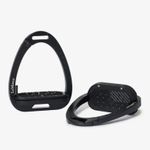 The footplate is supported by a twin-balance arch system that distributes the weight evenly across the base of the stirrup frame. The apex of the frame is recessed and off-set, encouraging a 45° outward orientation which makes it easier for the rider to locate the optimum angle for the foot and regain a lost stirrup.