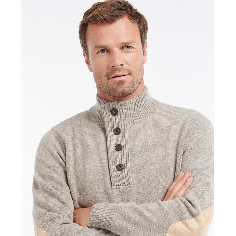 The elegant sweater features a timeless dark blue color and a mottled pattern, which adds a modern touch. Additionally, the zip/mocker neck sweater comes with a standing collar that can be fastened with both buttons and a zipper. The arms of this outdoor sweater are adorned with rugged patches that are synonymous with Barbour's classic style.