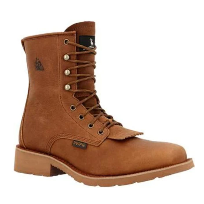 The 8" Rocky® MonoCrepe brings a new meaning to lightweight. Built on our proprietary lightweight oil & slip resisting Rocky® MonoCrepe outsole and our Rocky® Air-Port Lite® sponge PU footbed with memory foam, this square toe lace-up boot keeps your feet energized so you can get the job done on the ranch. Waterproof full grain leather combined with all around waterproofing by Rocky®, guarantees to keep your feet dry and protected when you need it most. Made to last with the help of a double stitch flex welt construction and a fiberglass shank for added support giving you a stable platform that helps reduce foot fatigue and discomfort. A removeable brush guard kiltie adds protection against the tongue preventing dirt, dust, and other debris from accumulating on your laces and into your boot. This boot meets ASTM F2892 electrical hazard standard.