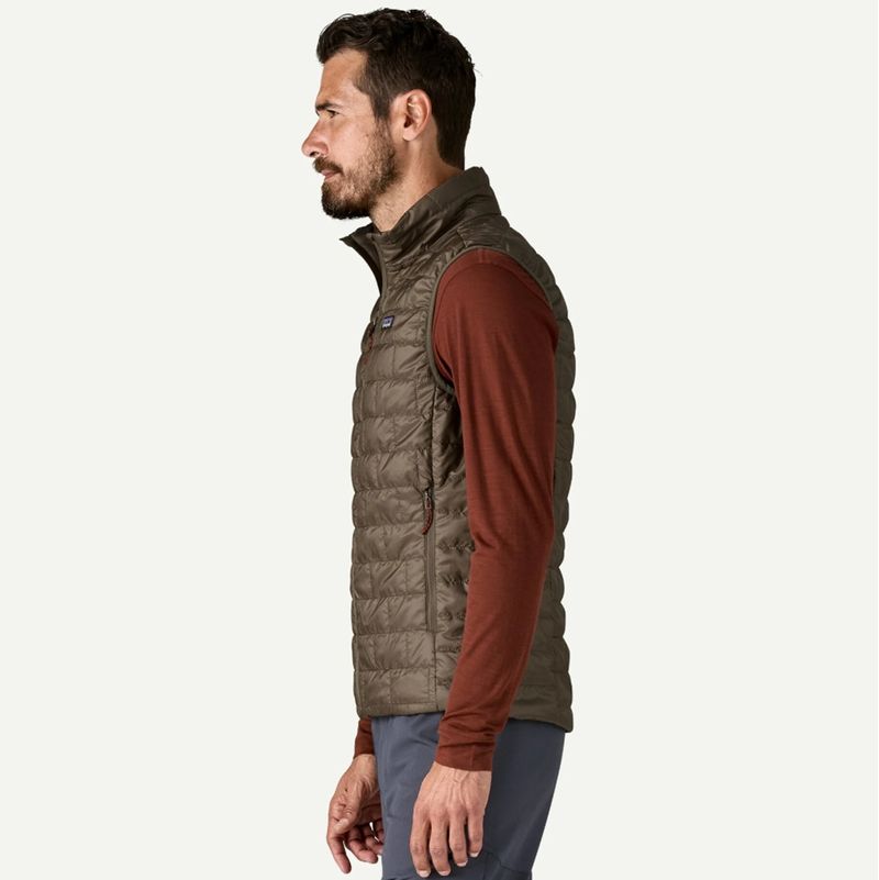 We built the Nano Puff® Vest for climbers who needed a weather-resistant, lightweight and packable synthetic insulation layer that could stay warm even when wet and withstand seasons of use. Ever since, those same features have made it the uncontested favorite midlayer for just about any outdoor pursuit. With fit refinements for improved mobility, 60-g PrimaLoft® Gold Insulation Eco 100% postconsumer recycled polyester with P.U.R.E.™ (Produced Using Reduced Emissions) technology, and a 100% recycled polyester shell and lining. Made in a Fair Trade Certified™ factory.