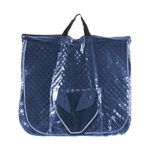 The Equinavia Voss Dressage Saddle Pad and Bonnet Set offers a stylish, coordinated look. The poly cotton saddle pad features a contoured design with diamond quilting and breathable tricot mesh backing for comfort, along with a girth loop for secure fit. The matching bonnet, hand-crocheted with nylon ears, provides both functionality and flair. Both pieces are trimmed with elegant single cording for a refined finish. Packaged together in one bag, this set is perfect for easy gift giving or a convenient store display.