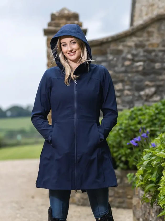 Our new Maisie Lightweight Riding Jacket is the perfect layer for those warm yet rainy spring and summer days. Made from water-resistant fabric, this jacket has taped seams and extra fabric at the back that allows the rain to roll off.