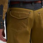 Built for behind-the-scenes living, the Filson® x Wrangler® Two-Tone Adventure Jean can handle anything you throw at it. It’s crafted from 14.5 oz. 100% cotton indigo denim with Filson’s tightly woven, waxed duck canvas reinforcement at the watch pocket, seat, knees, and kick plate offering maximum protection from punctures, tears, and abrasion in wet conditions. You'll have a right-side utility pocket to keep your favorite knife close at hand as well as a back patch pocket and a flapped back pocket with a hidden snap to keep your essentials secure. Genuine gear for those who know the difference and can’t help but answer that call of the wild.