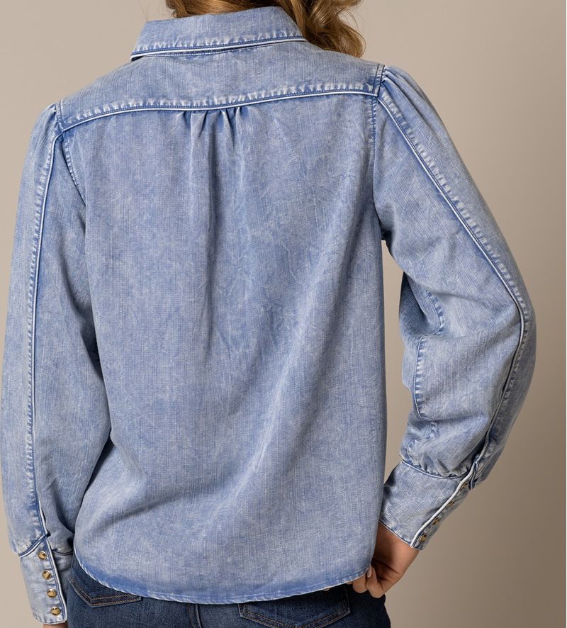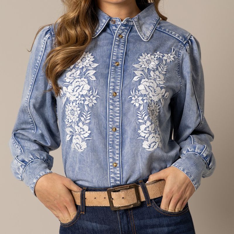 ClothingWesternShirtsKimes Women's Mae Long Sleeve Floral Shirt - Light Wash Indigo