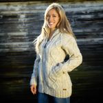 An elegant Aran cable pattern with flattering vertical lines and an attractive top-of-the-thigh hemline make the Shannon an instant classic. This luxe design features sculptural interlacing diamond stitch, a traditional Irish symbol for prosperity, and a hand-carved wooden zipper pull. Fully fleece-lined and with a stand-up collar and oversized hood, you'll feel toasty the moment you lay eyes on her.